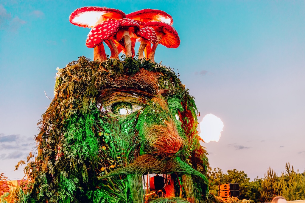 The arena is neatly divided up into sections, with the stages well sited to avoid too much bleed. As you enter, you pass the Meadow stage, the largest of the covered stages, and a handful of shops and bars. To the left lies the Coda stage and a direct path to both the Pallet stage and the children’s area – home to the festival’s Ofsted-accredited school from Wednesday to Friday; open for general activities (including drum circles) at the weekend. To the right lies Big ‘Ed – a giant green man who pumps out banging tunes throughout the festival – and Maui Waui, with its instantly recognisable inflatable octopus. There’s also a dusty path that leads out of the main arena to the bizarre Convoy Cabaret Tent, the Earth Area (with its firepit and activities), and the Woodland stage. It’s all close enough that it can be explored with ease, yet broken up enough that it feels like a small village, with each festival goer discovering their own favoured corner.