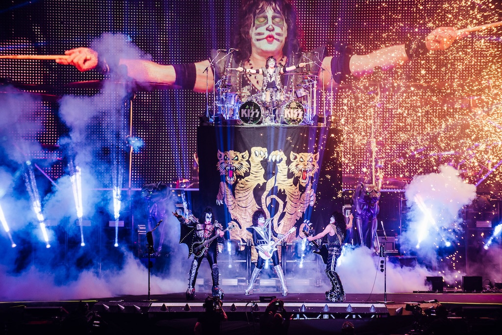 With enough explosions to keep even the most manic fan happy, the band head into the wonderfully ridiculous I Love It Loud, which features a classic singalong chorus, plenty of whiplash from Gene’s heavy metal and, to cap it all off, a fire breathing finale. Cold Gin, a stone-cold Kiss Klassic gets both a lengthy intro and Tommy taking out the stage lights with rocket fire and, while Tears Are Falling and Lick It Up get a great reaction, it is the underrated Psycho Circus that sees the drumkit launched skywards as Eric Singer delivers a perfectly pitched drum solo.