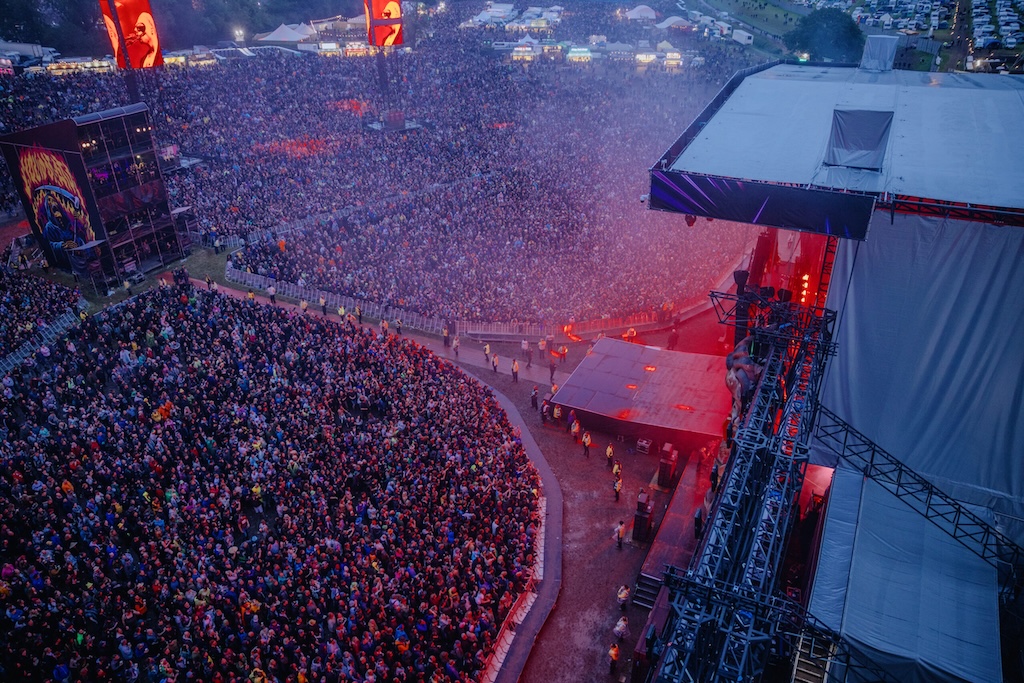 With most of the stalls now out in The Village (although some remain in the Avalanche field), the arena maintained the more open layout of last year. The accessibility platform has returned to its spot in the centre, and it appears to be larger than previously, although it’s hard to judge from the outside. There’s also more seating scattered about the place, with a pair of bars by the Avalanche stage, and the Welder’s Yard food court providing plenty of picnic benches. It’s much needed too, considering the conditions. That said, despite the muddy conditions, staff do their level best to keep paths clear, and matting down to support mobility across the site. It’s not ideal, and the further down the slope you get, the more impassable the mud becomes, but overall, accessibility appears much improved across the arena.