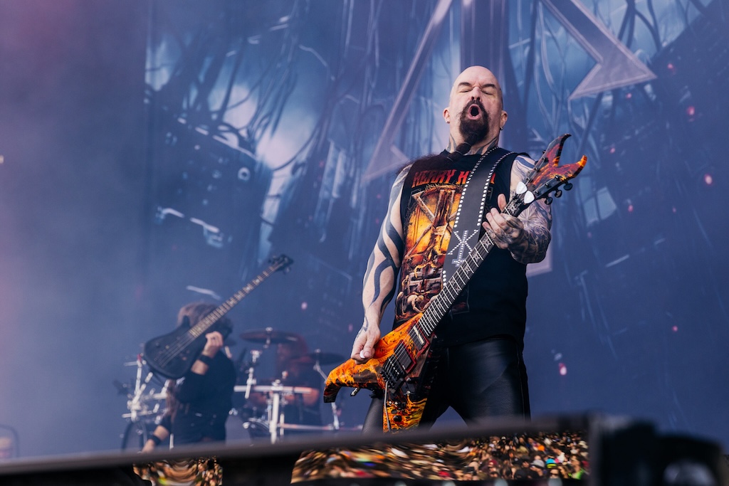 Over on the Apex stage, the mighty Kerry King is set to unleash hell with his new band. Joined by Mark Osegueda (Death Angel), Phil Demmel (ex-Machine Head), Kyle Sanders (hellyeah), and Paul Bostaph (ex-Slayer), Kerry may have dropped down the bill compared to Slayer’s lofty placements, but that only adds to the intensity he brings, and the band unleash a short, awesome display of old school thrash. Predominantly airing tracks from the excellent From Hell I Rise album, Kerry sets the stage alight with killer cuts including Where I Reign, Toxic, Residue and Shrapnel. While Raining Blood and an unexpected Black Magic may get the biggest cheers, it’s notable that the new cuts do not sound out of place in their august company, and the band make a firm mark on the festival. Next time, expect to see them far higher up the bill, but for today, Kerry King demonstrated just what a potent force he remains.