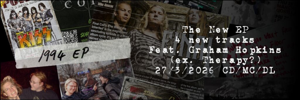 On January 16th 2024, Final Coil launched their third album, The World We Inherited, with an incendiary gig at The Black Heart in London. It was an intense show and it kickstarted nearly two years of furious activity and unprecedented success for the Leicester band. Highlights included the band’s first Bloodstock appearance, a sold out headline show at the Supersonic club in Paris, coverage in Prog magazine, a return to the Fusion Festival alongside Amplifier and Von Hertzen Brothers, a multitude of glowing reviews for both The World We Inherited and the supporting live shows…all concluding with a return to The Black Heart to celebrate the expanded vinyl release of The World We Inherited. It’s been quite a ride and in typical, feverish Final Coil fashion their next progressive opus is already underway. But right now, after three multi-faceted, musically complex and lyrically intense concept albums – a momentous, creatively draining trilogy – it’s time for Final Coil to refresh and recharge with an explosive set of songs that take them back to their roots; back to the sweat, feedback and volume of the clubs that raised them; back to the exhilarating youthful anger and energy that kickstarted the band; back to the music that inspired them to pick up their guitars and rage…back to 1994!