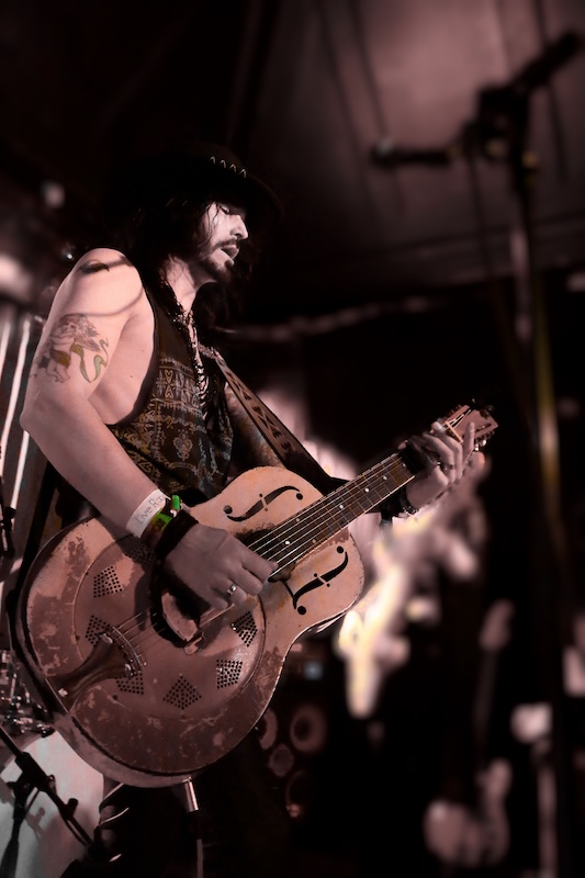 It’s not all well-worn numbers that Troy’s dishing out tonight. Brand new song Getaway has a massive grungy riff, pounding, tribal drums and cool harmonies, highlighting the heavy material Troy has waiting in the wings. Similarly, The Native has one hell of a hefty beat, and a dirty western undercurrent. It ends on a nice groove that could easily be three times as long, and it’s on these occasions that you wish Troy had the time to extend these jams out a bit. The set’s epic highlight, at least until its manic conclusion, is surely Down, with its funky bass, greasy slide and an early Alice in Chains vibe. From there, there’s the Landreth-does-Sabbath Scorpio, the glam-infused stomp of The Fever and, bringing the set to a suitably devastating end, Sanctify. While it starts with Troy in full-on blues preacher mode, by the end it has devolved into a stunning blitz of Neil Young-esque noise guitar, which swirls across the venue like a tornado and leaves the audience awestruck in its wake.