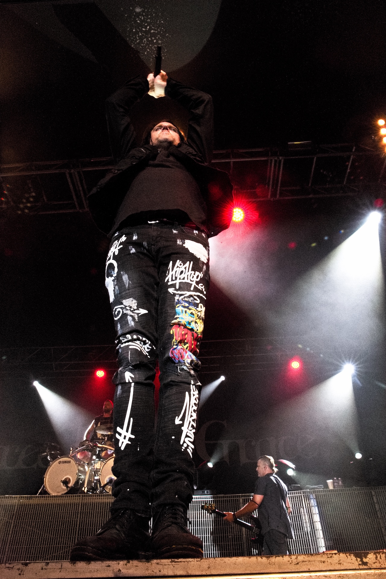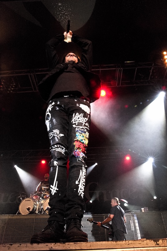 The PA makes a significant leap in terms of both volume and clarity as the evergreen Jump Around blasts out, announcing the arrival of Canadian rockers Three Days Grace. Eliciting a huge cheer as they walk out on stage, the band are in their element here, playing to an enthusiastic audience who begin singing along with opening belter So Called Life, and keep it up for the duration. With slick presentation and transatlantic swagger, the band have the crowd clapping along to the seething Animal I Have Become, while singer Matt Walst straps on a guitar for the darker, less polished Home (harking all the way back to the band’s 2003 debut), which only ups the levels of enthusiasm pouring from the fiercely partisan crowd. The schizophrenic Pain, with its processed vocals and impossibly hooky chorus allows for a slight change of pace, as does The Mountain, although it’s a less successful track, not least because it sounds rather like a cross between Bring Me The Horizon and Survivor. That said, the damn chorus sticks in your head like glue, and it’s still rattling around in there some two days later.